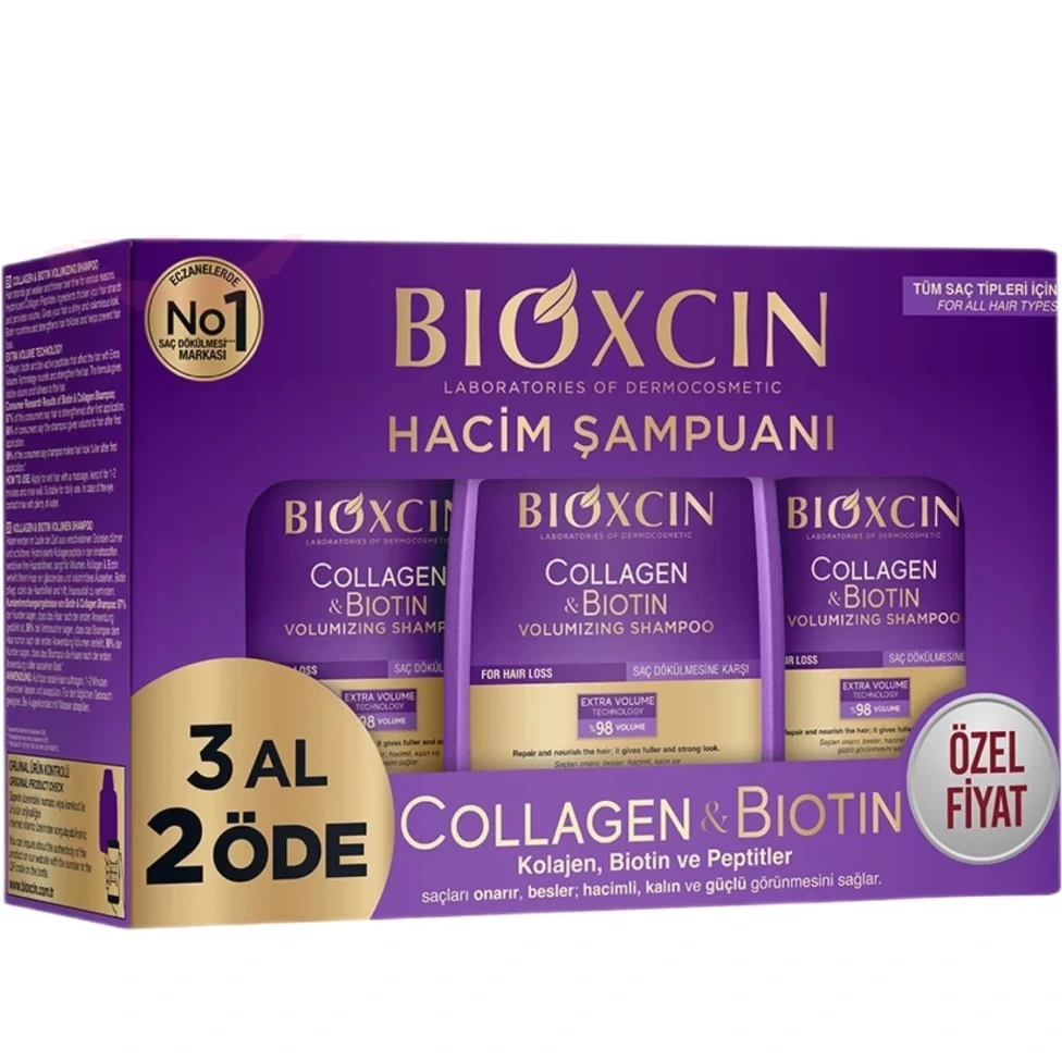 شامپو ضد ریزش و حجم دهنده بیوتین و کلاژن Collagen & Biotin 300ml پک 3تایی
