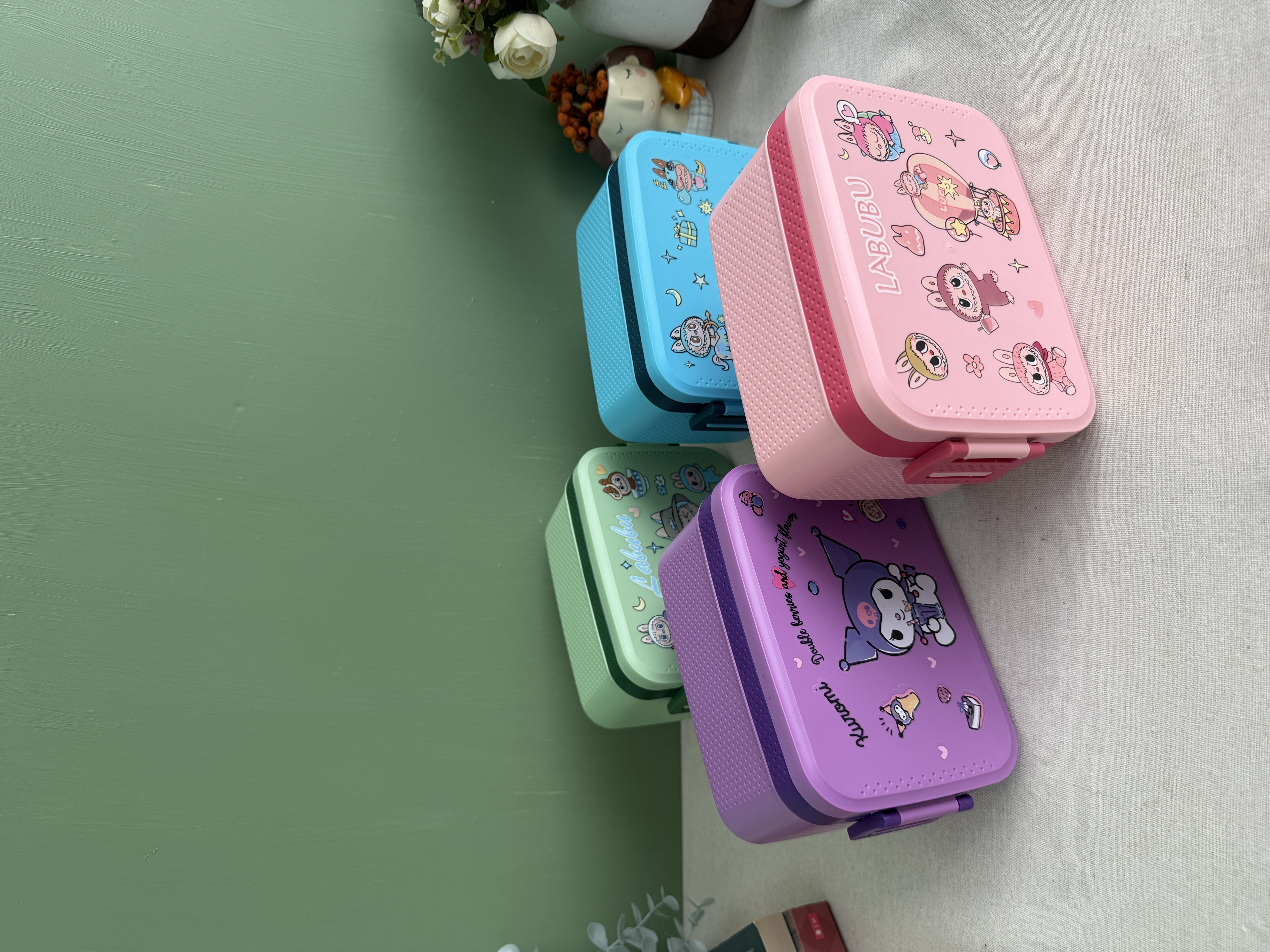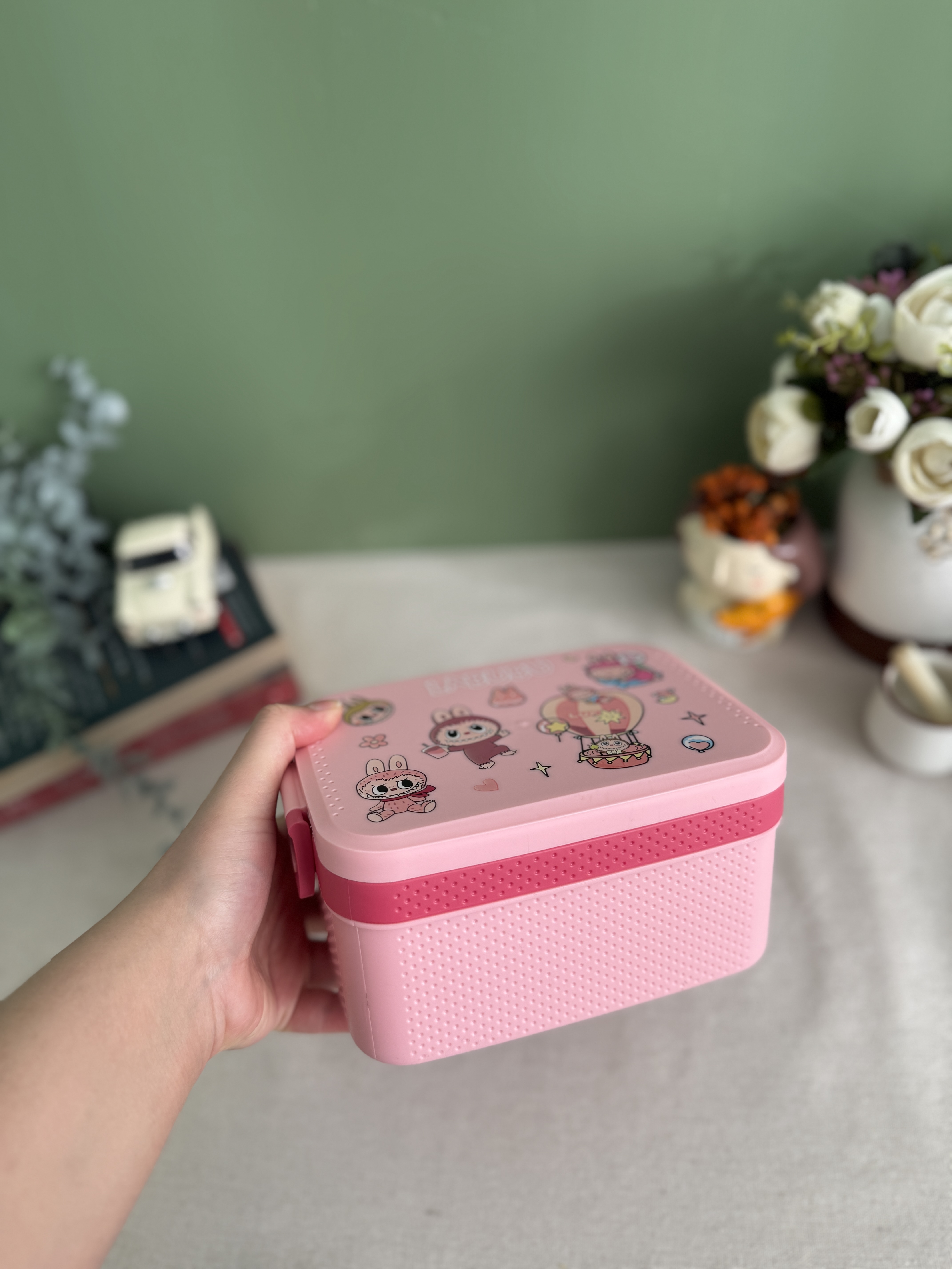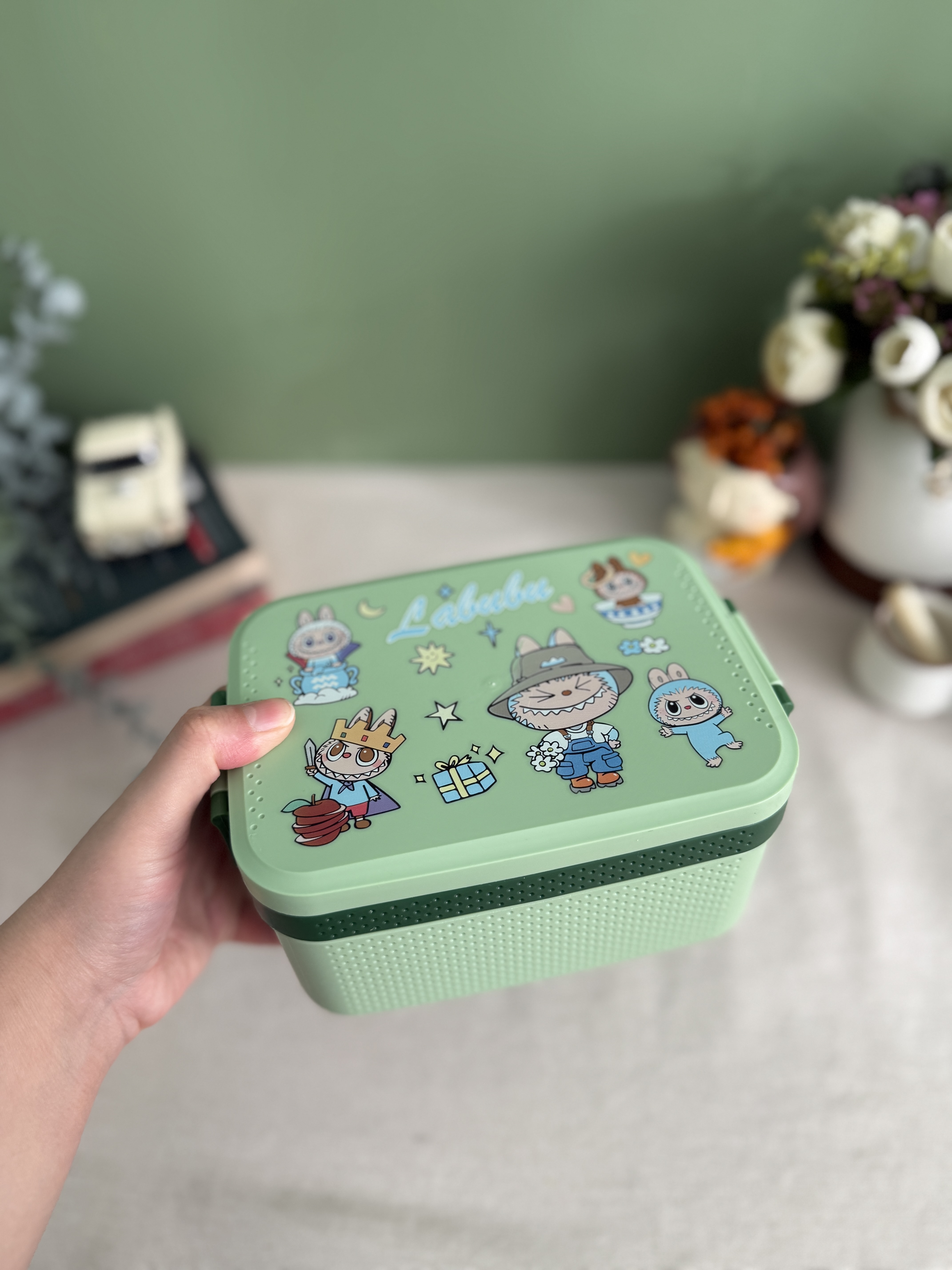 ظرف غذای دو طبقه استیل وارداتی طرح لبوبو ( رنگ سبز)
