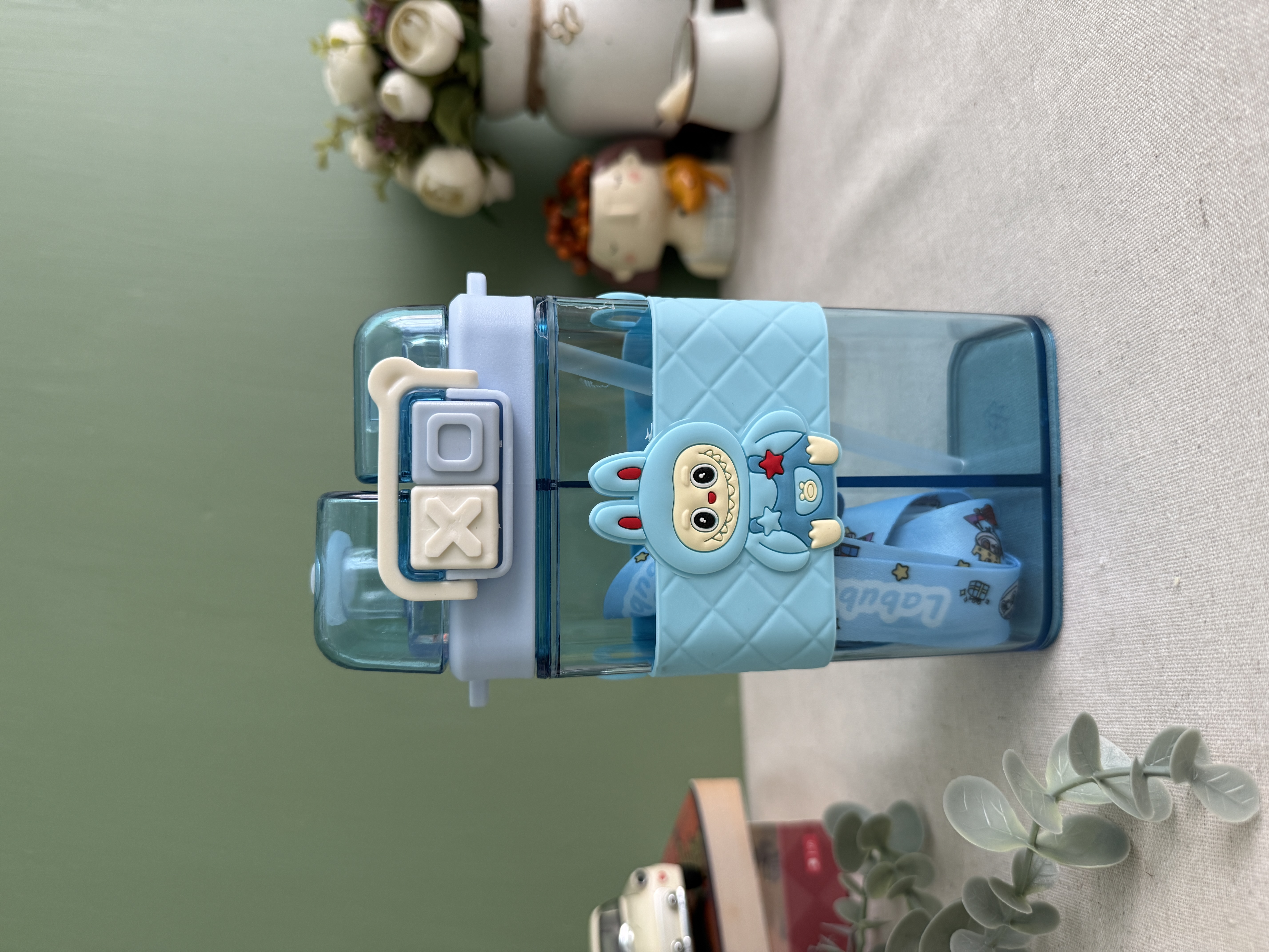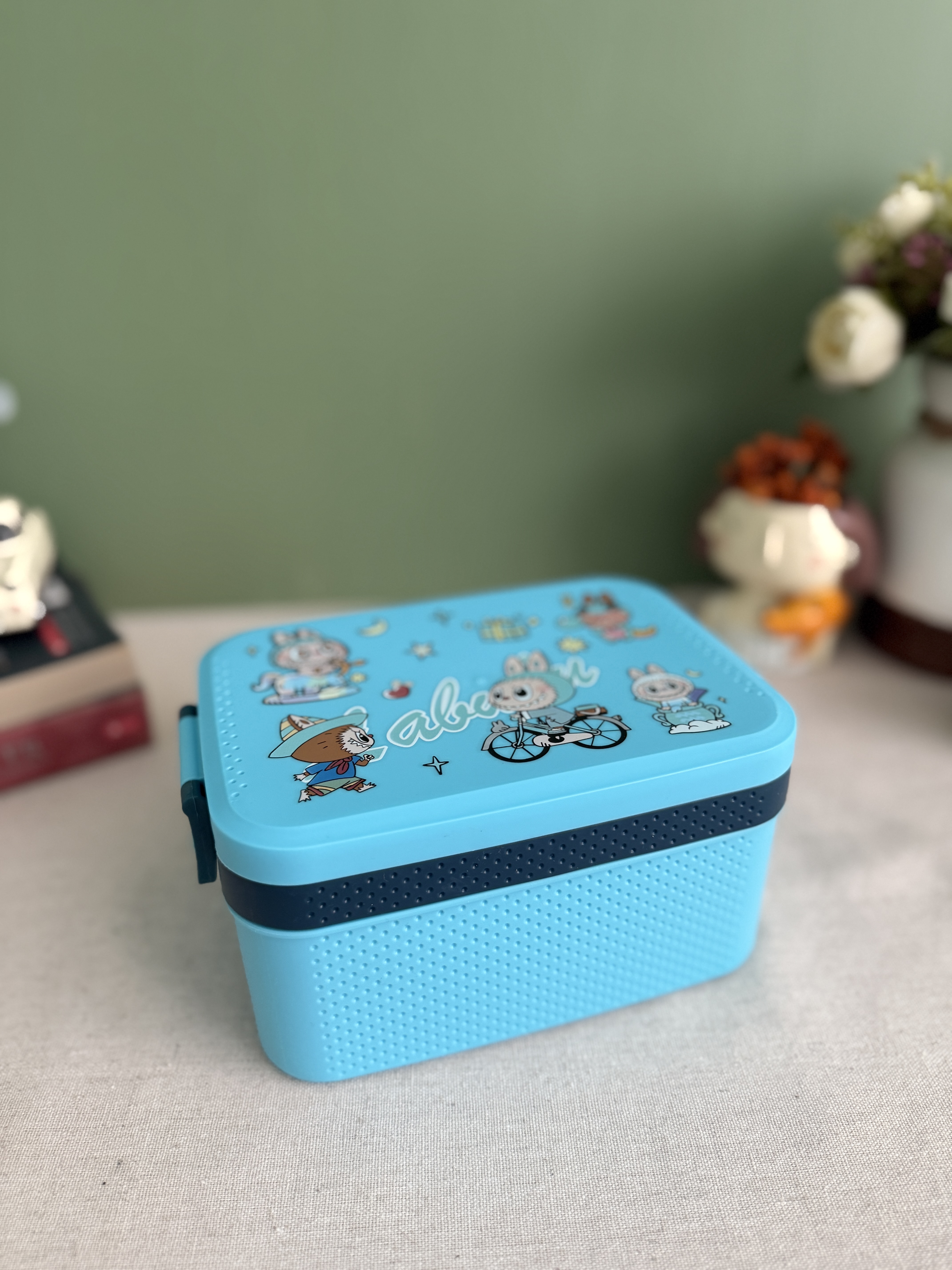 قمقمه دو مخزنه وارداتی طرح لبوبو (رنگ آبی)