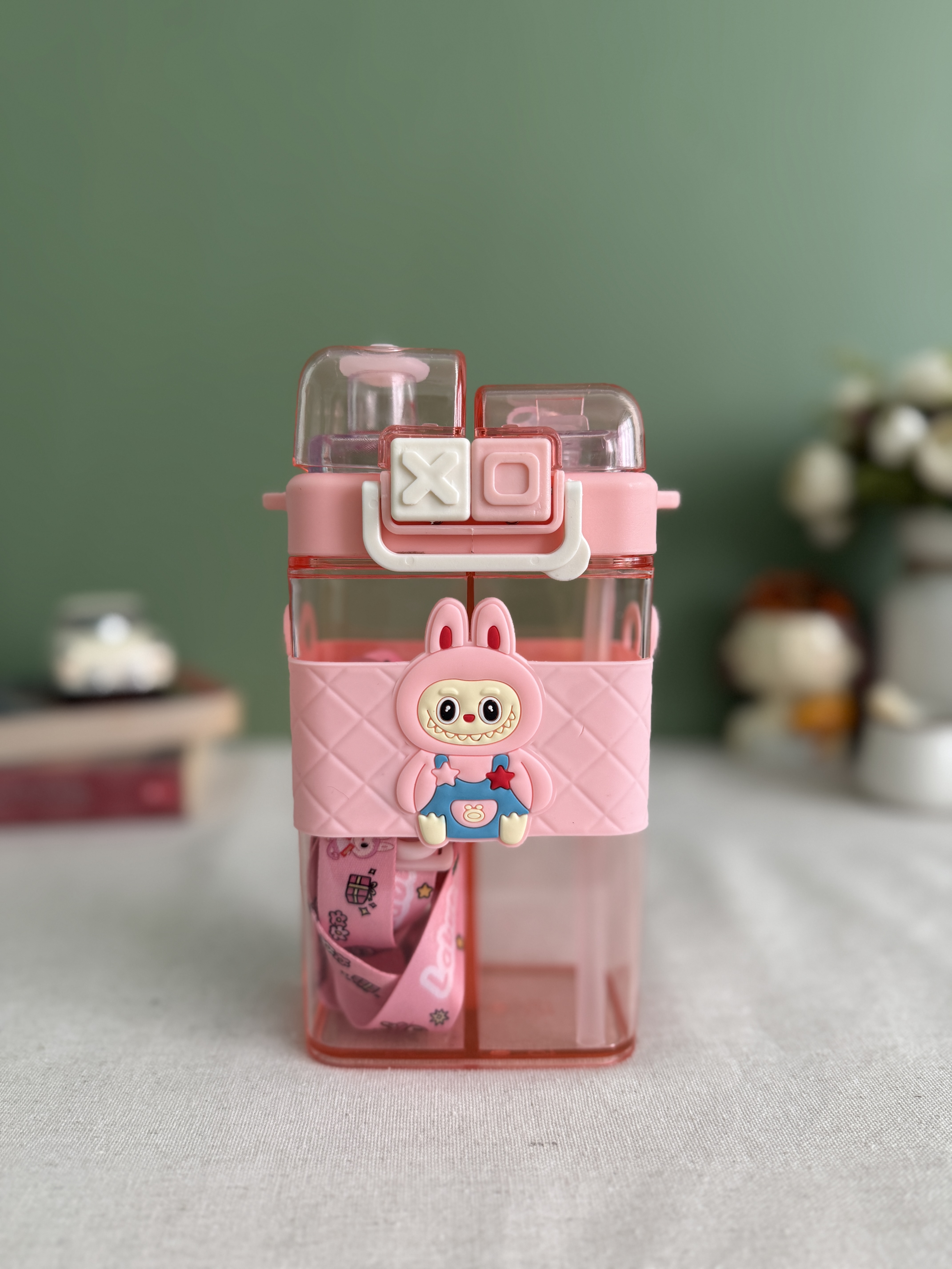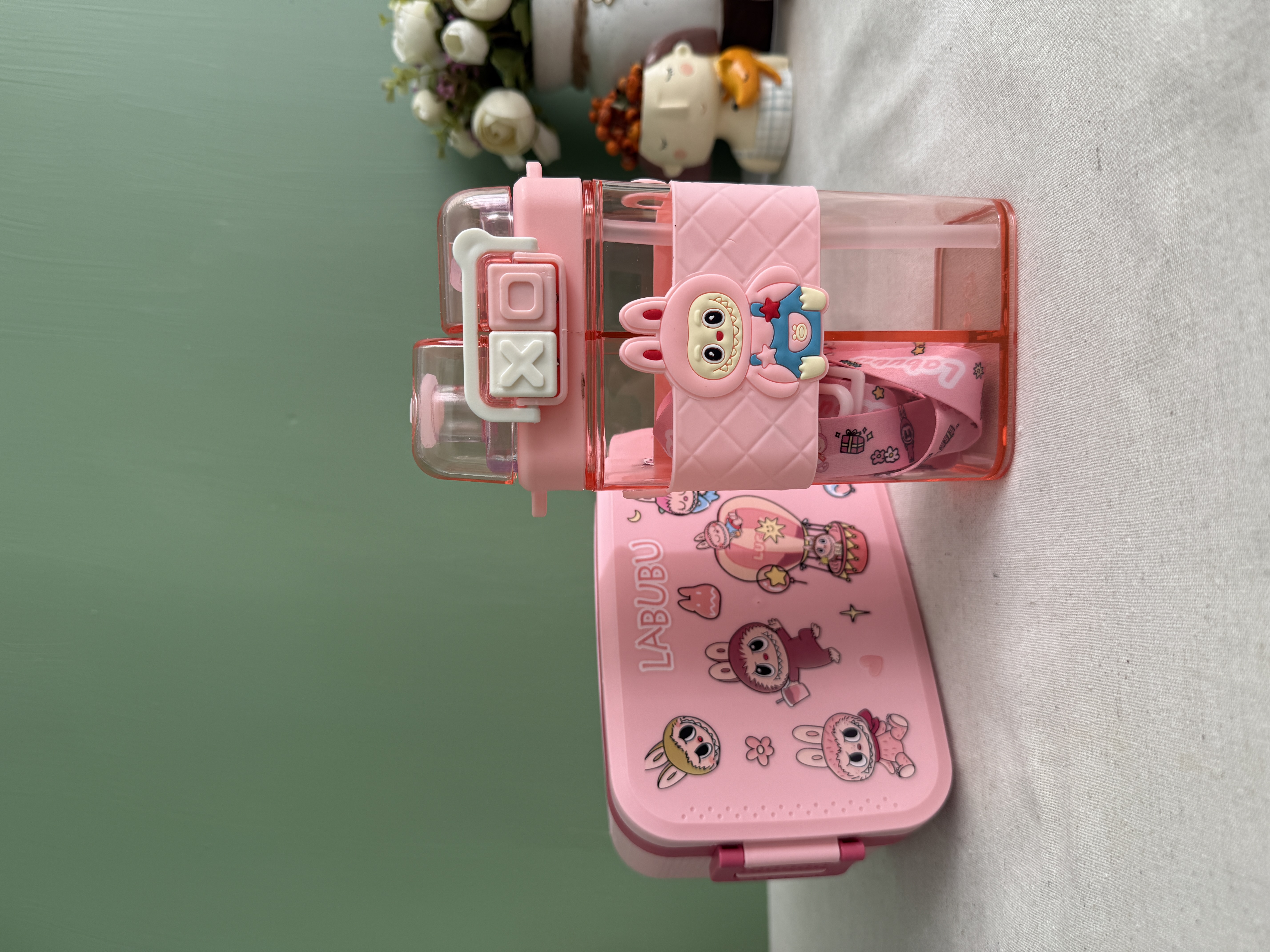قمقمه دو مخزنه وارداتی طرح لبوبو (رنگ صورتی)