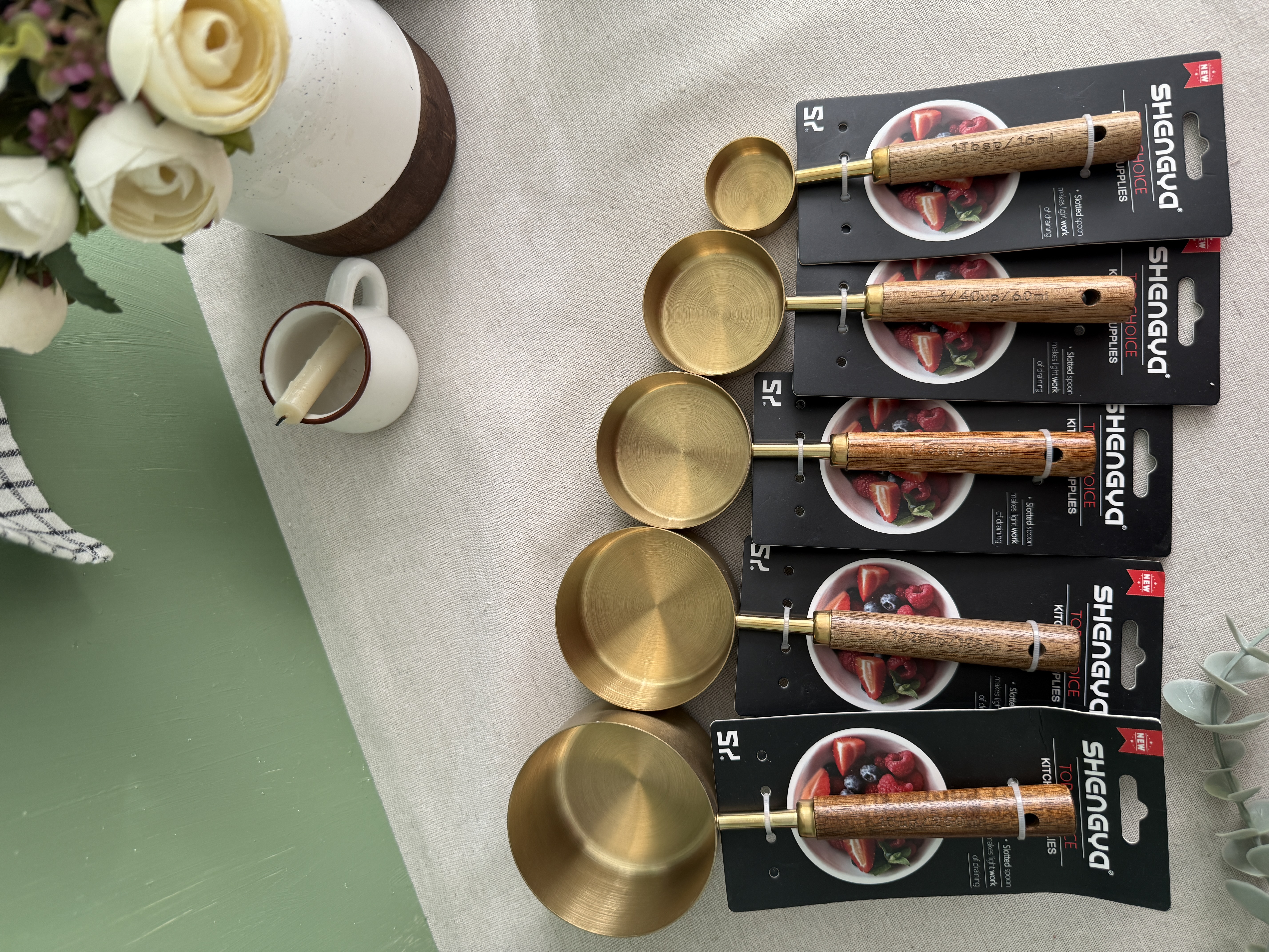 ست پنج تایی پیمانه فلزی طلایی دسته بامبو وارداتی