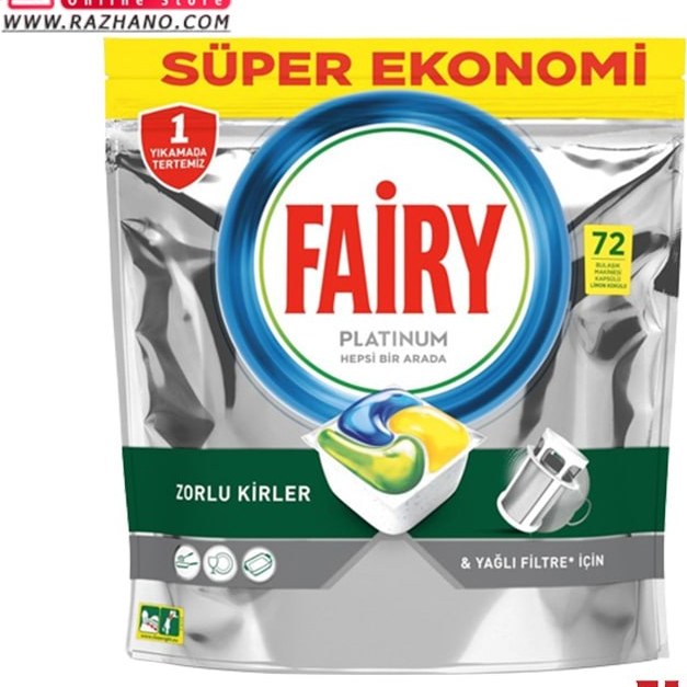 قرص ماشین ظرفشویی فیری مدل پلاتینیوم بسته ۷۲ عددی