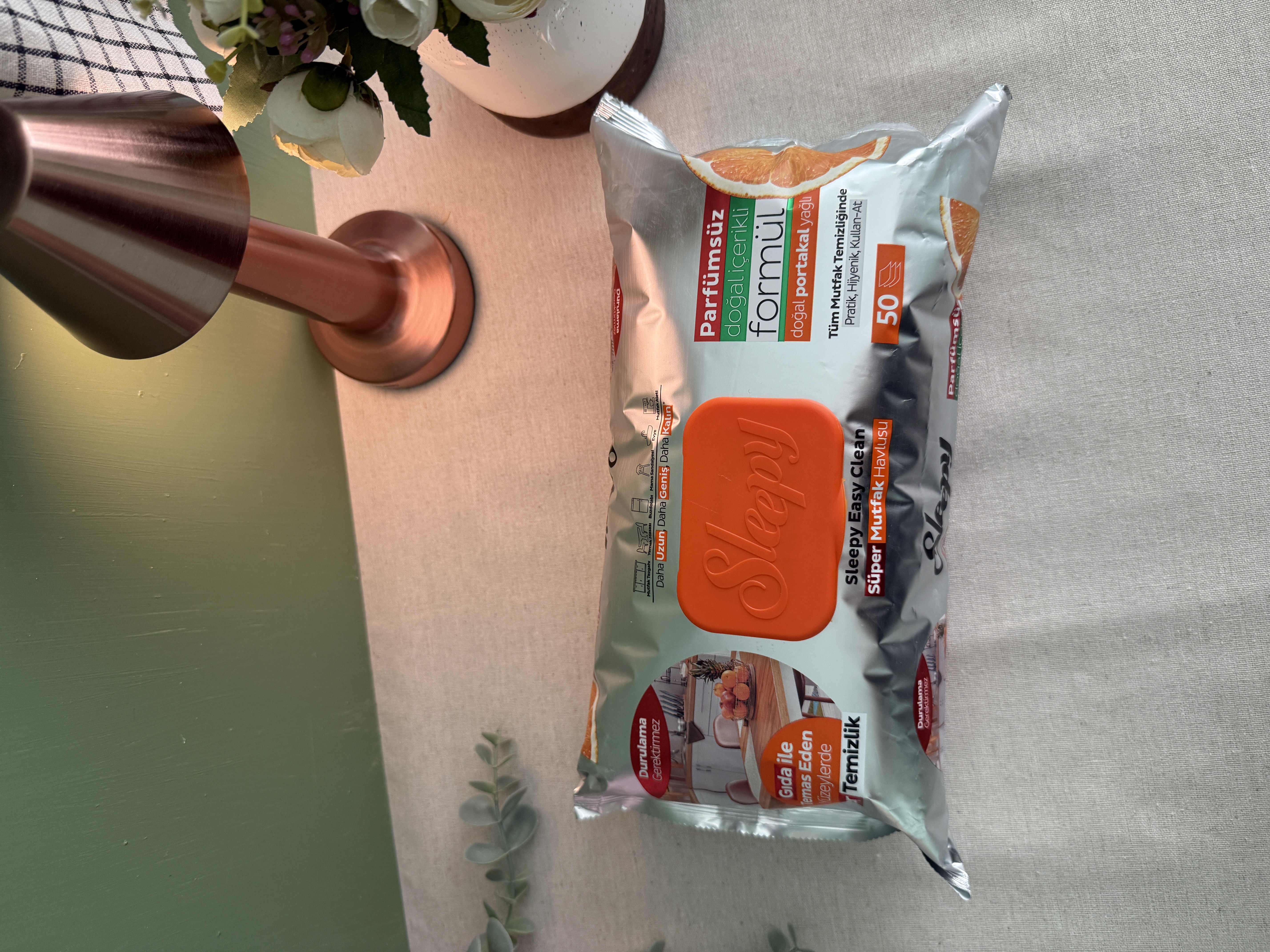 دستمال مرطوب چربی زدا اسلیپی مخصوص آشپزخانه و سطوح با رایحه پرتقال 50 عددی