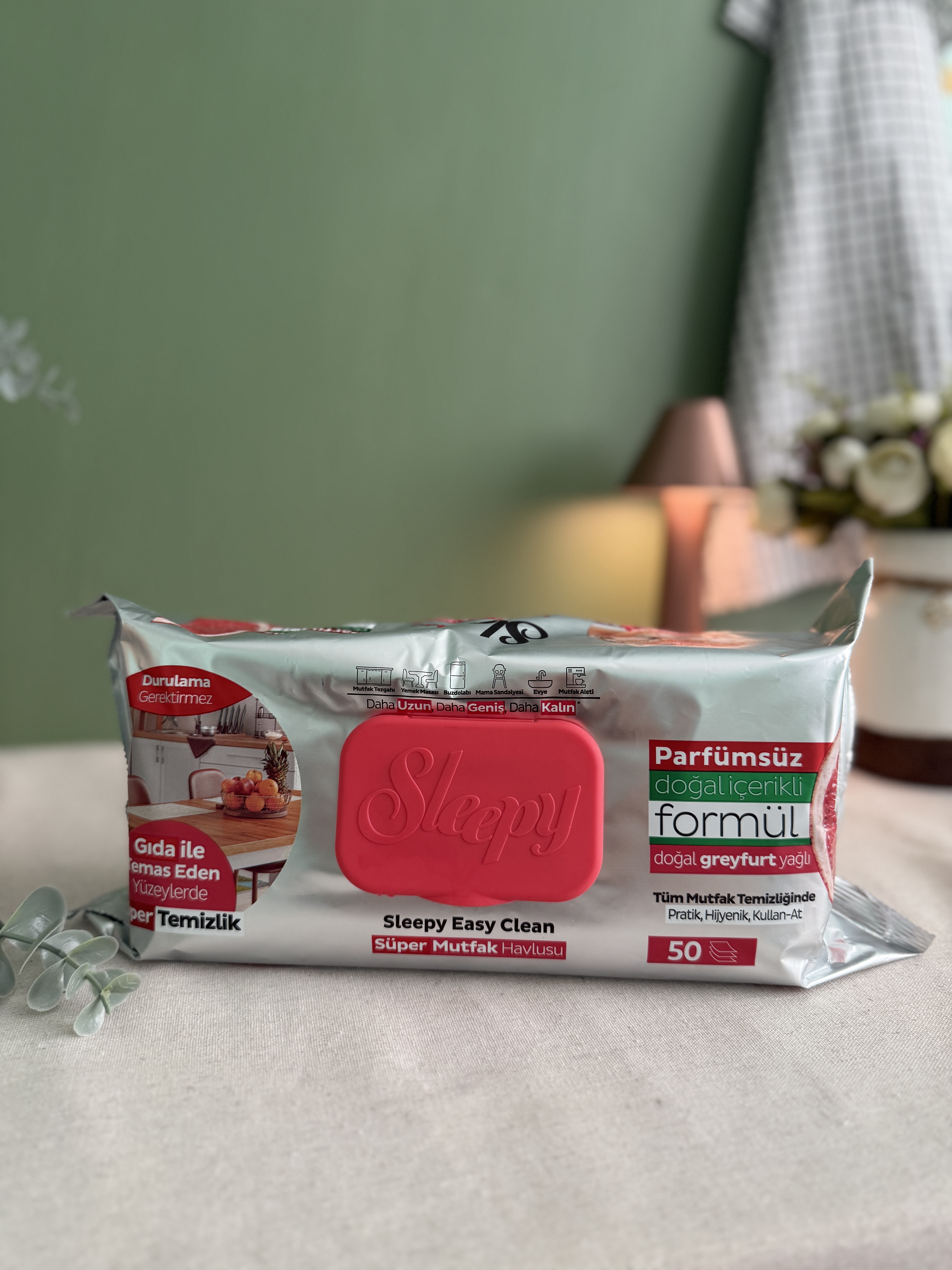 دستمال مرطوب چربی زدا اسلیپی مخصوص آشپزخانه و سطوح با رایحه گریپ فروت 50 عددی