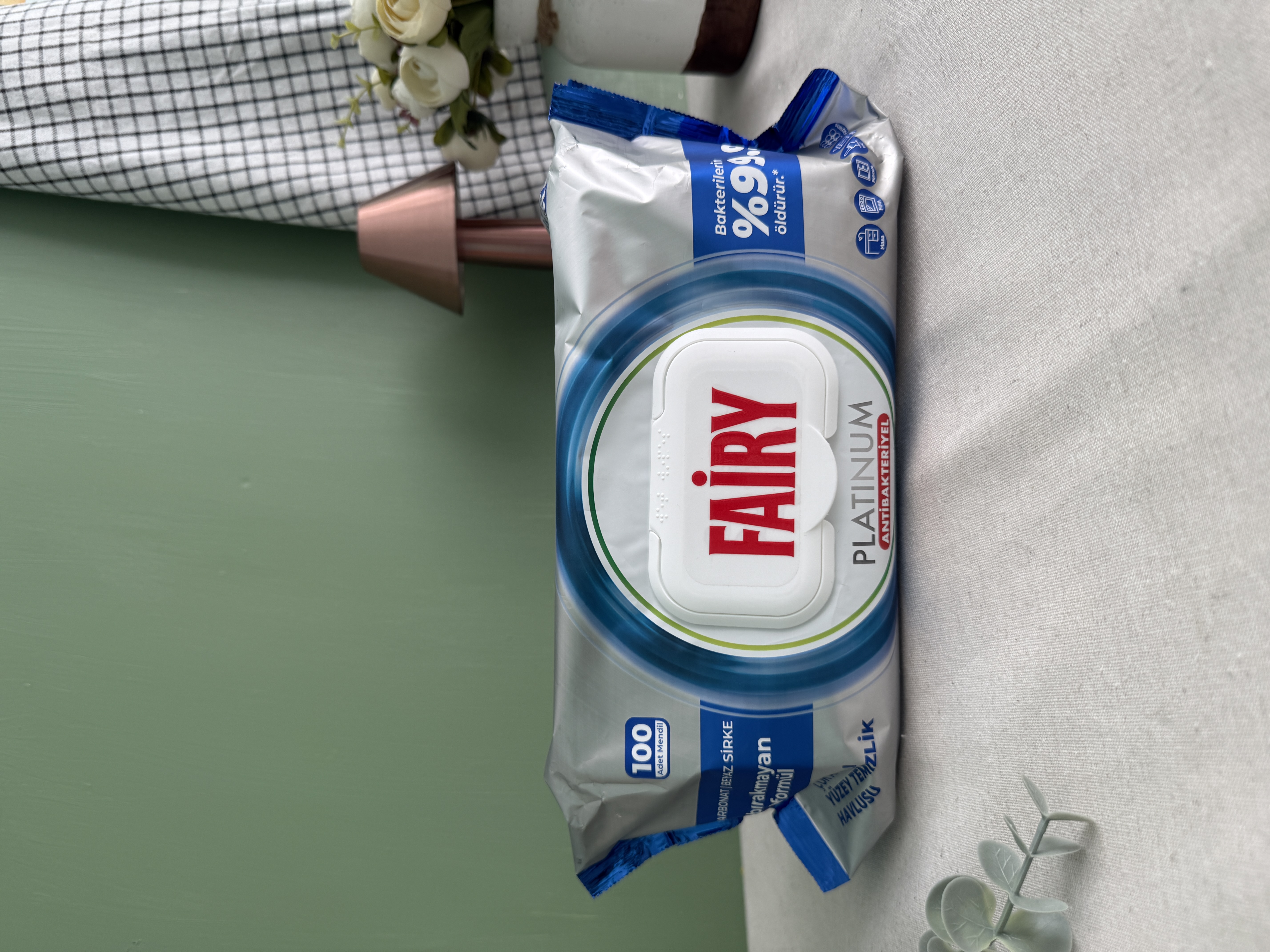 دستمال مرطوب چند منظوره سطوح فیری با خاصیت آنتی باکتریایی Fairy مدل Platinum بسته 100 عددی