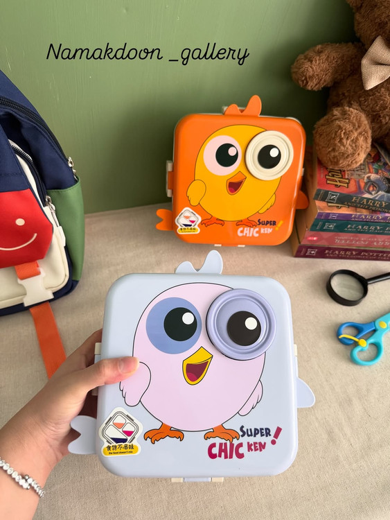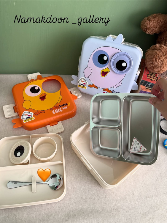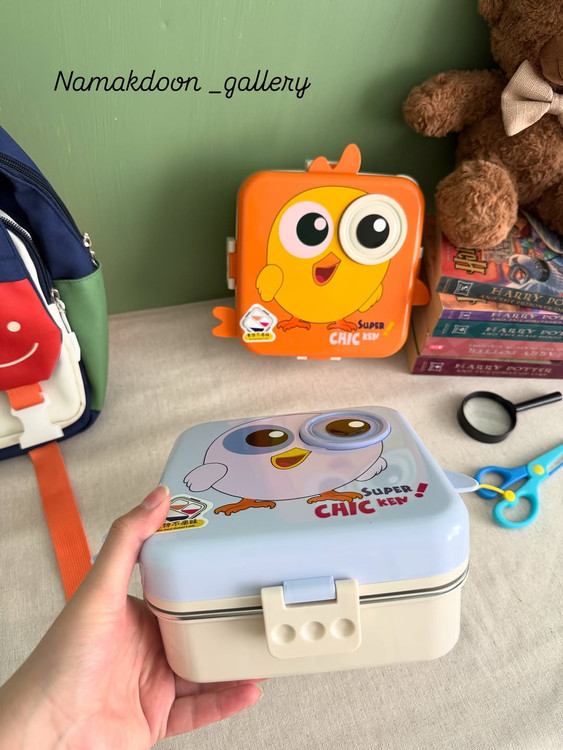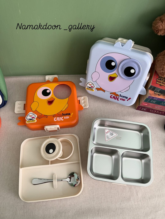 فرق داره!!! بله، این لانچ باکسمون مدلش لکس سان هست و داخلش استیله و حتی قاشقشم استیله تازه جعبه هم داره استیلش ۳۰۴ هست و جدا هم میشه دقیقا مثل مدل پلاستیکیش طبق نوشته ی روش به هیچ عنوان مواد غذایی داخلش مخلوط نمیشن میدونی که همه ی محصولاتمون هم وارداتی هستند ظرف غذای طرح جوجه مدل استیل در دو رنگ نارنجی و آبی یخی موجود
