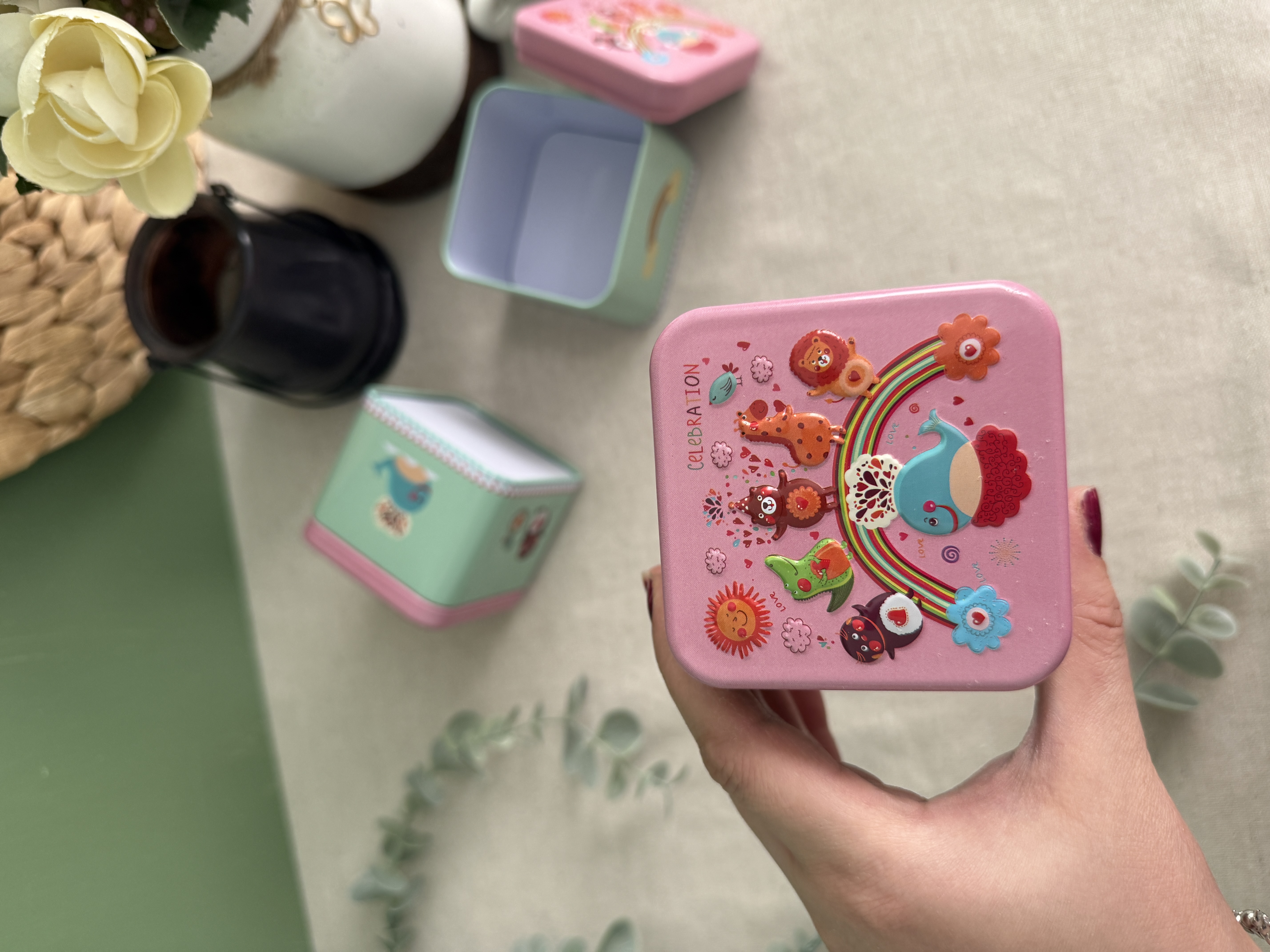 باکس فلزی در دار فانتزی محصول وارداتی مناسب نگهداری تنقلات ، خوراکی و بدلیجات و ..... ابعاد: ۷/۵*۷/۵*۷