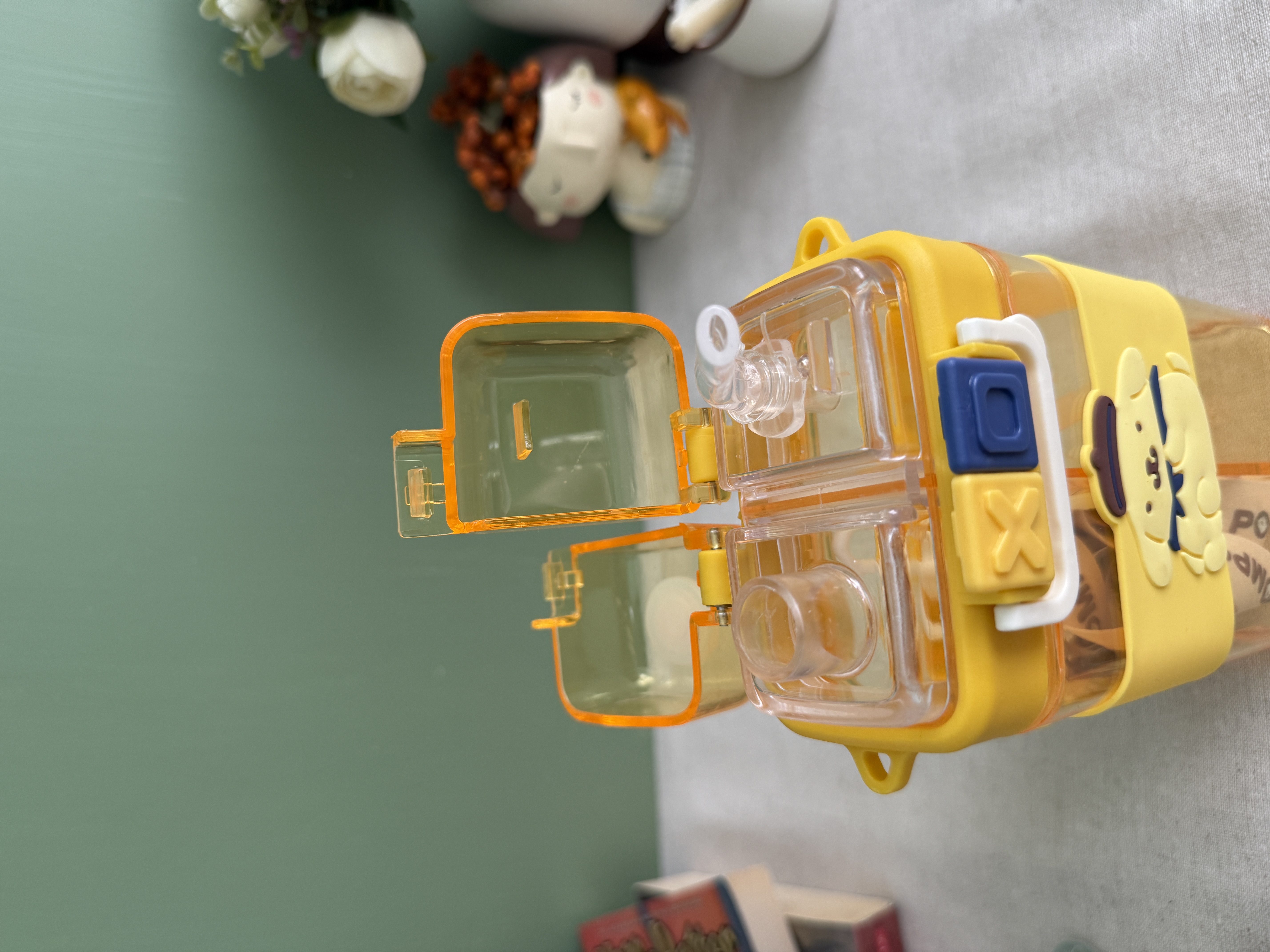 قمقمه دو مخزنه وارداتی طرح پوم پوم (رنگ زرد)