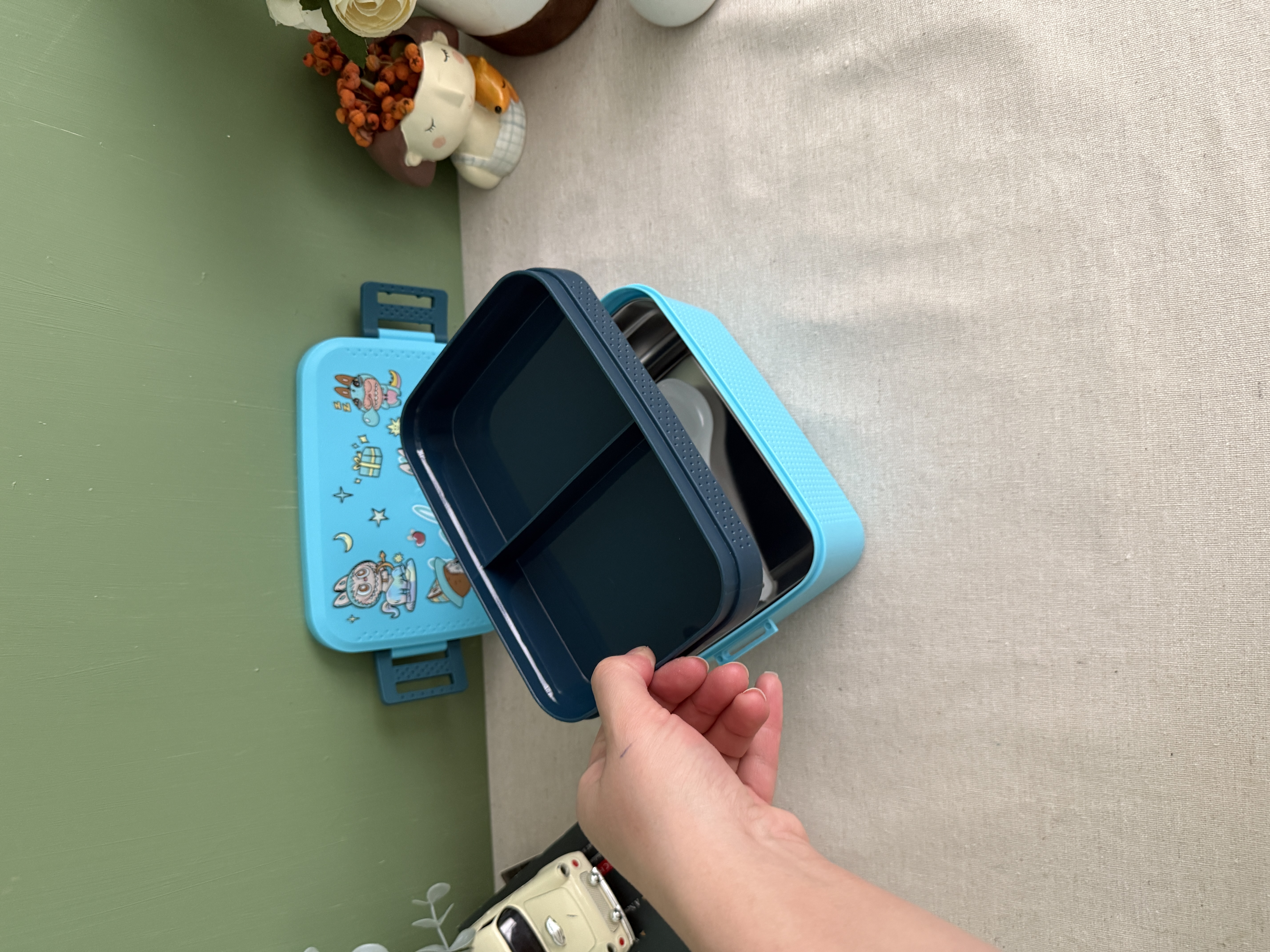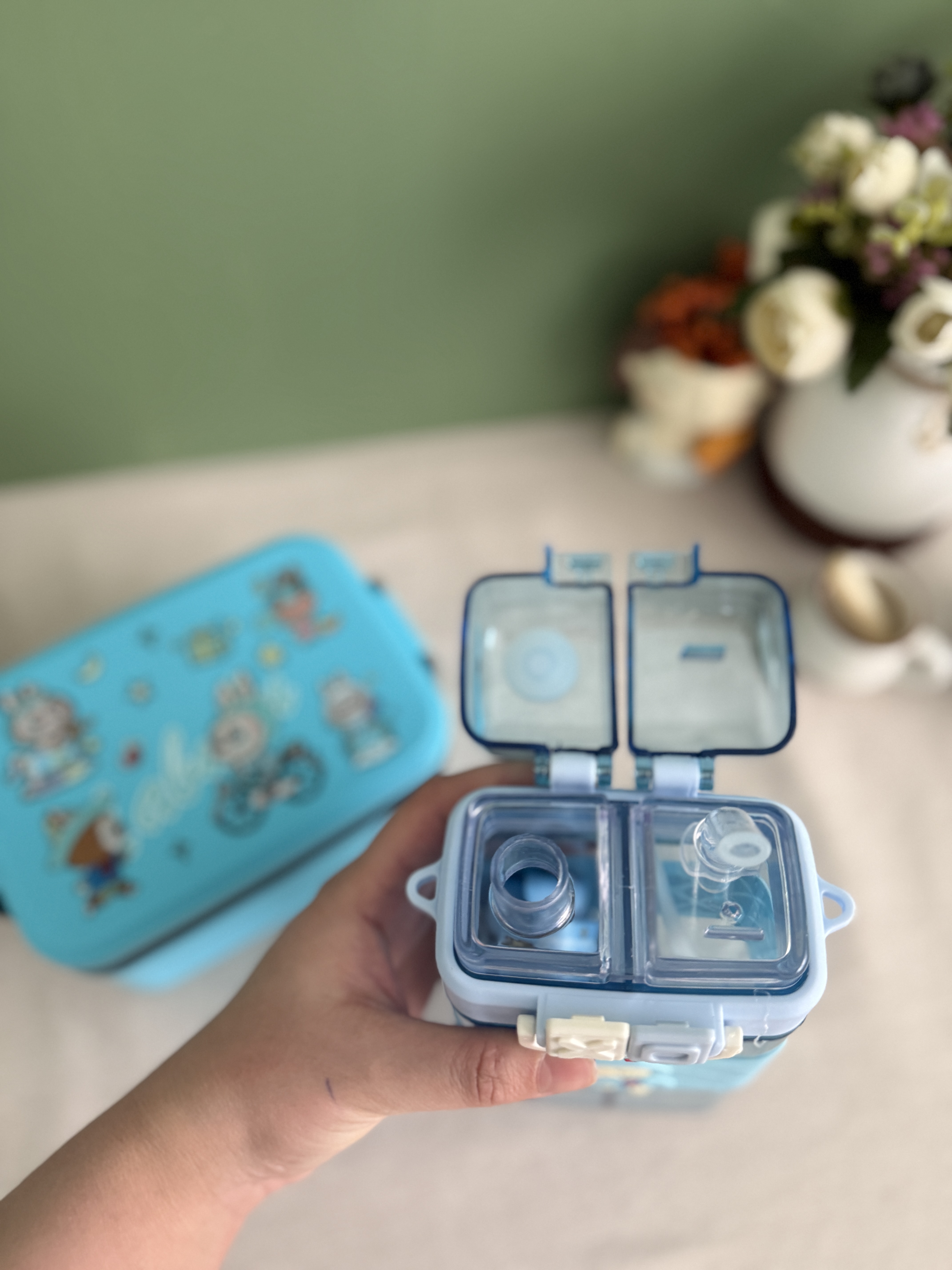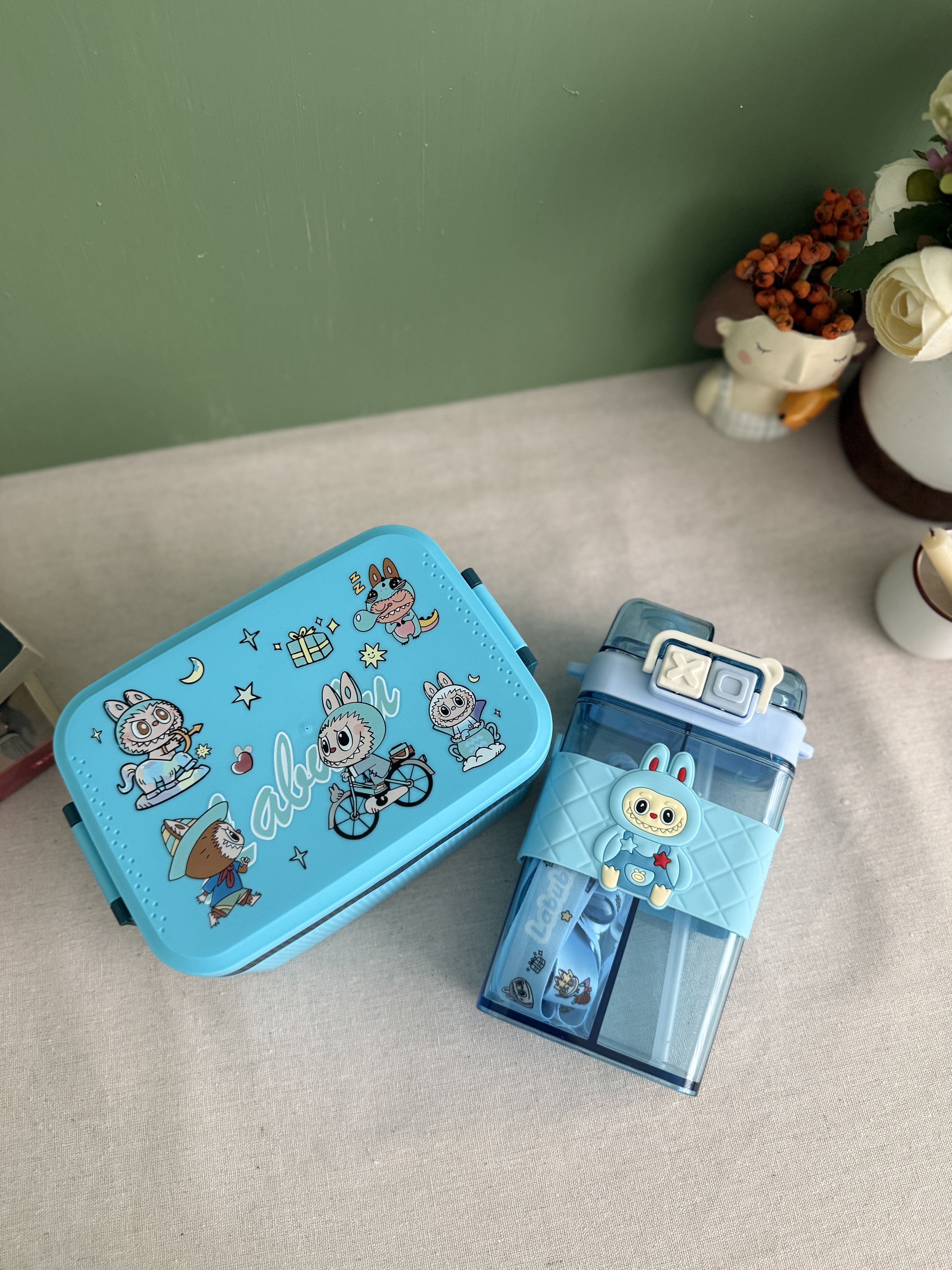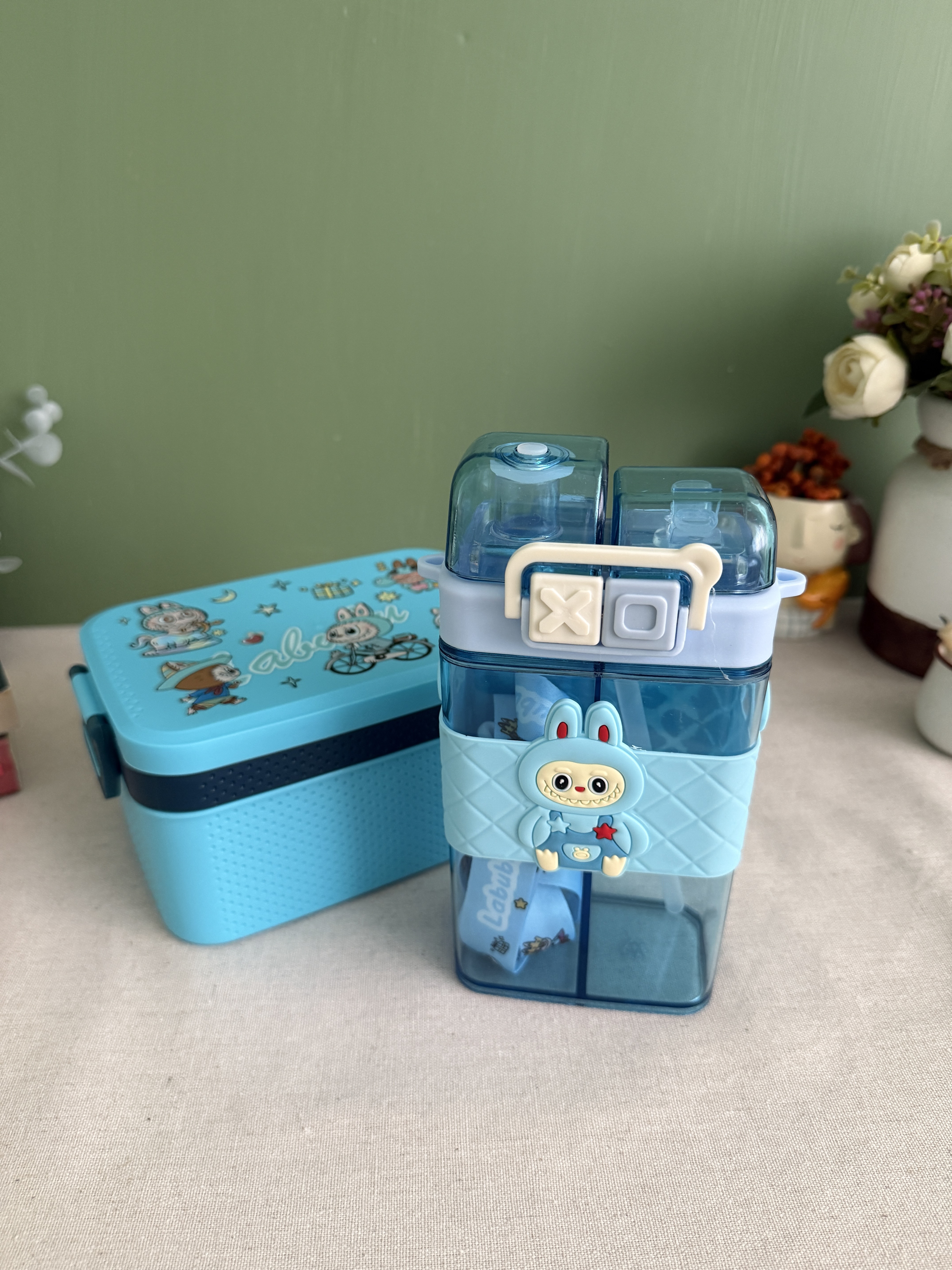 ست لانچ باکس استیل و قمقمه دو مخزنه وارداتی طرح لبوبو (آبی)