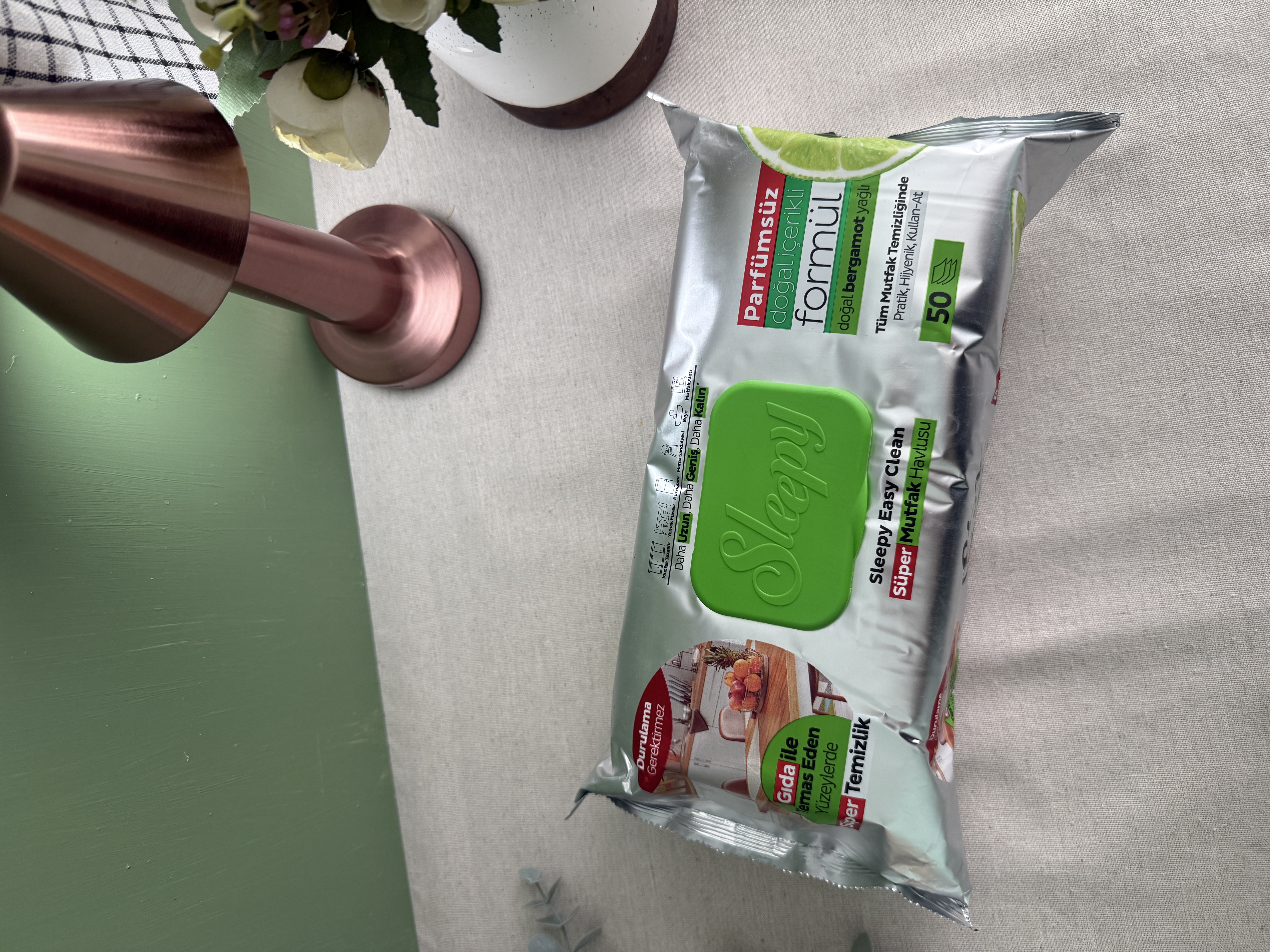 دستمال مرطوب چربی زدا اسلیپی مخصوص آشپزخانه و سطوح با رایحه لیمو 50 عددی